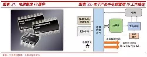 功率 IC 下游核心产品——电源管理芯片电源管理芯片(Power Management Integrated Circuits)也称作电源管理 IC,是在电子设备系统中担负起对电能的变换、分配、检测及其他电能管理的职责的芯片,主要应用于计算机、网络通信、消费电子和工业控制等领域。