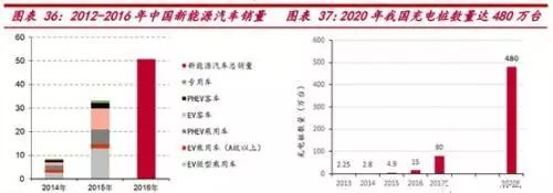 在政府大力推动及各种补贴政策扶持下,2016 我国新能源汽车的产销量持高增长,全年新能源汽车销量达 50.7 万辆,同比增长 52.7%。中国市场已经成为世界上新能源汽车最大的市场,也是增速最快的市场之一。作为新能源汽车必不可少的基础配套设施,我国充电桩行业也正处于高速建设期,市场空间同样广阔,根据国家发改委印发的《电动汽车充电基础设施发展指南(2015-2020)》,到 2020 年国内充换电站数量将达到 1.2 万个,分散式充电桩超过 480 万个,以满足全国 500 万辆电动汽车的充电需求。