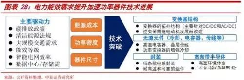 典型的功率处理功能包括变频、变压、变流、功率放大和功率管理,除保证设备正常运行以外,功率器件还起到有效的节能作用。