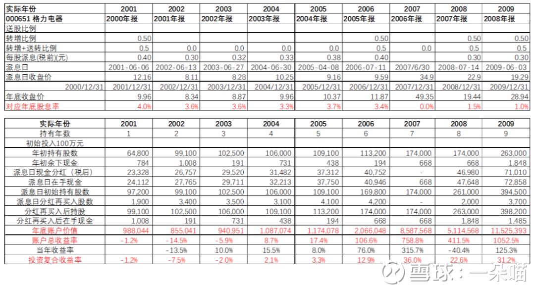 表5 大熊市下,格力电器2001年-2019年红利再投资情况推演: