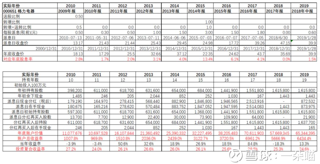 表3 格力电器2001年-2019年红利再投资实际情况: