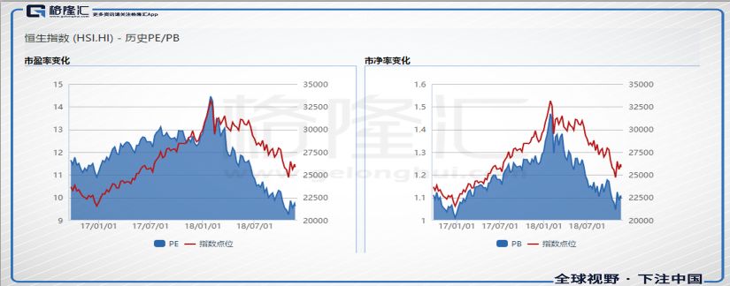 今年港股在大市环境不佳下表现的虎头蛇尾,除了一月创下新高外,其他几月基本上都是一路回调。截至目前,港股年度跌幅已经超过13%。而随着指数走低,其估值也不断下降,截至目前恒指滚动PE已经不到10倍,处在历史较低位置。