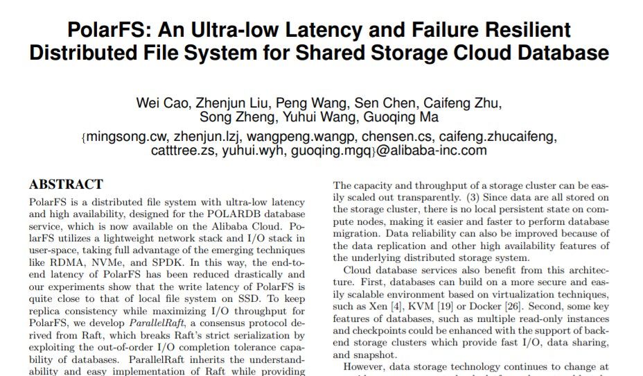 此前,《TcpRT:面向大规模海量云数据库的服务质量实时采集与诊断系统》、《PolarFS:面向云数据库的超低延迟文件系统》两篇论文也分别在SIGMOD和VLDB发表。今年还将有多篇论文在数据库顶级会议上发表。