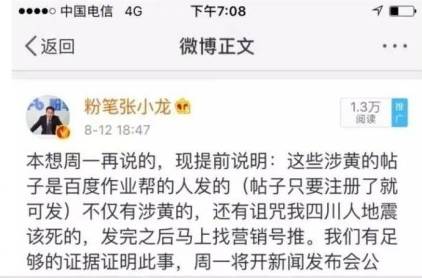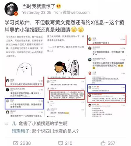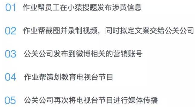 百度作业帮的员工在小猿搜题上发布了色情内容,然后再去找公关公司传播,一个完整链条。