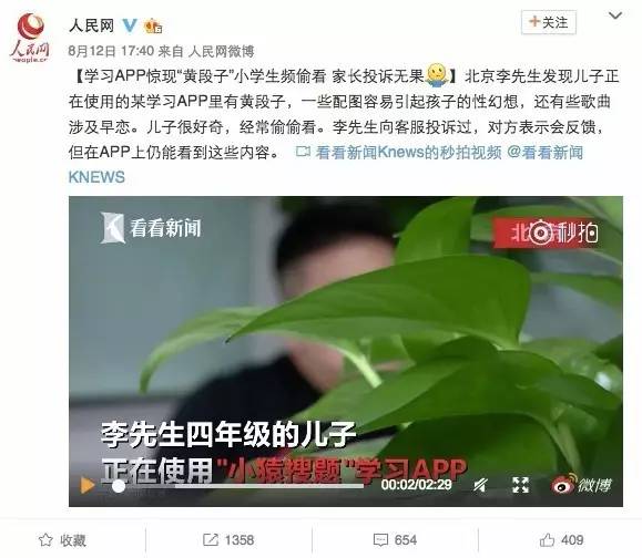 8月10日,中国教育网出现了一期视频节目,批评小猿搜题里面的跟帖,极不健康、少儿不宜。