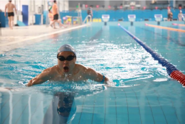 来自核研院的苗积臣老师代表教工代表队出战,在男子50米蛙泳决赛中游出了46秒34的好成绩。苗老师38岁才开始学游泳,是受到清华大学浓厚体育氛围的影响,目前每周都会坚持游泳2到3次。