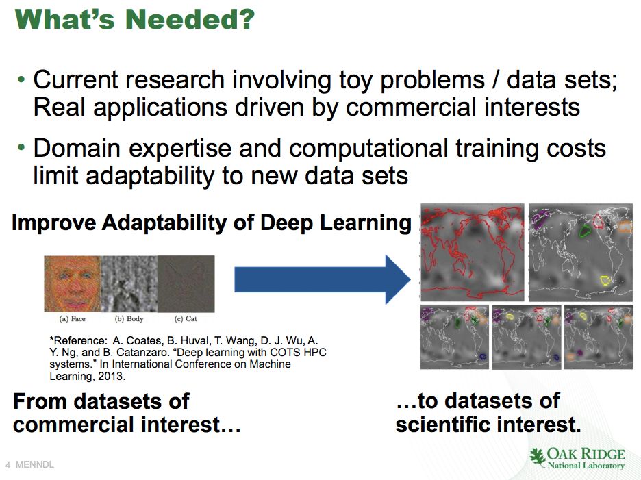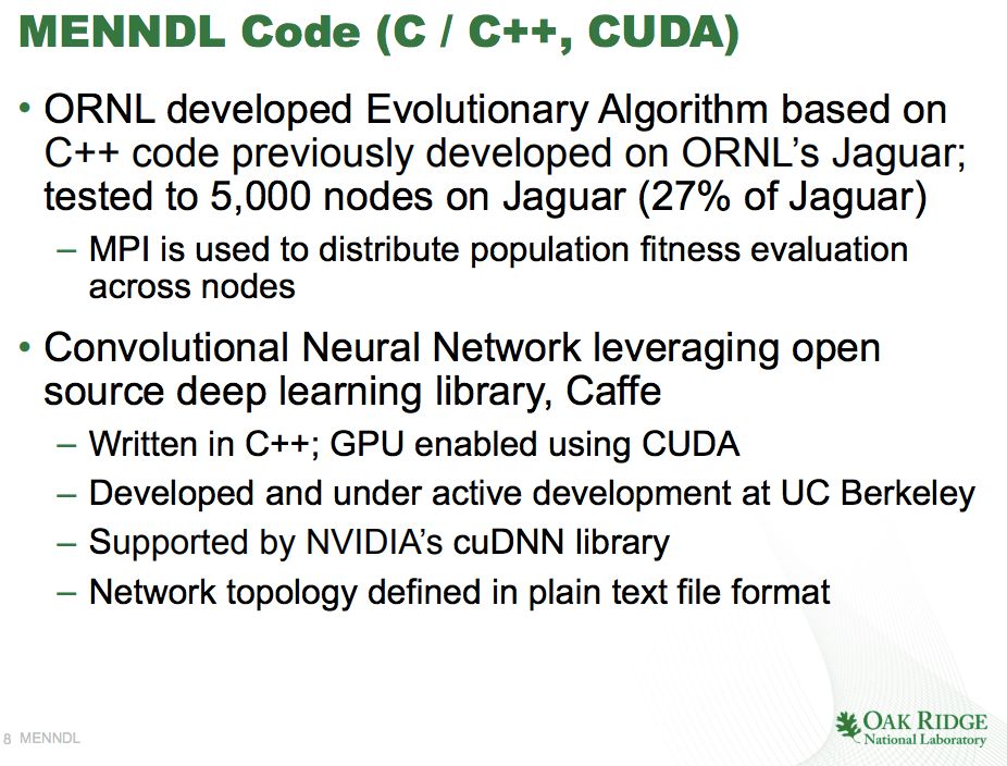 ORNL的博士后研究员Steven Young指出,这就需要采取与Google和Facebook的 AI平台不同的方法。