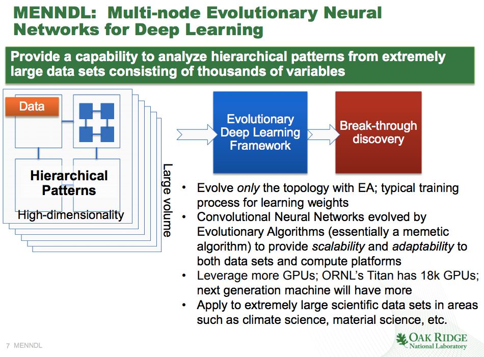 ORNL研究小组的算法叫做MENNDL,即深度学习的多节点进化神经网络。这个算法并不是用来创建那种收集可爱猫咪照片的AI系统。相反,MENNDL是测试和训练数以千计的潜在神经网络的工具,以处理特殊的科学问题。