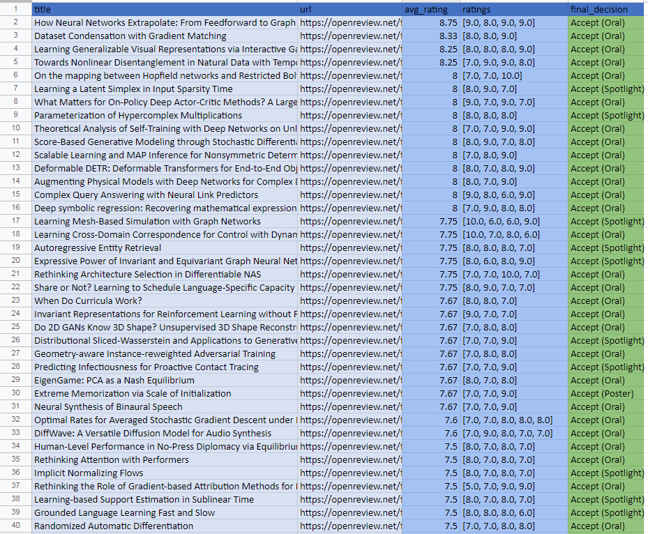 在论文放榜之后,又是辣个男人,Criteo AI Lab机器学习研究科学家Sergey Ivanov,他又一次火速爬取了ICLR 2021全部的被接收录用的论文: