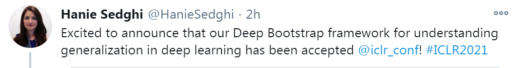 谷歌大脑机器学习科学家Hannie Sedghi表示很开心很激动。