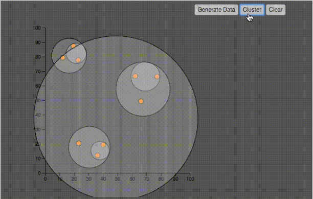 4、重复第二步,直到所有的点都被聚集到聚类中。