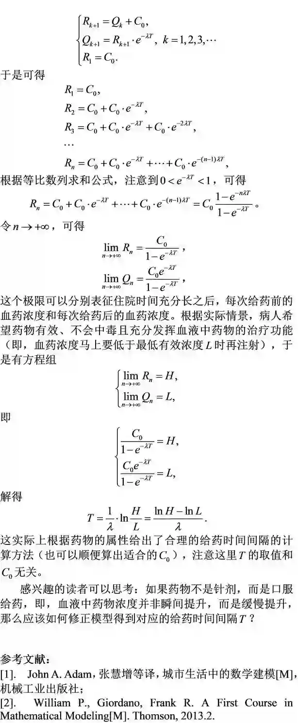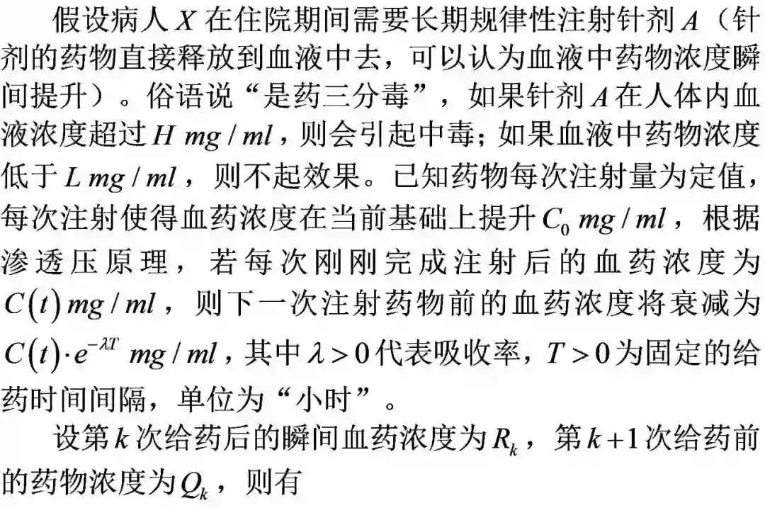 3. 住院病人给药时间表的设计:等比数列求和与极限控制法。