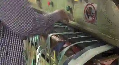 热压机粘合表面后,工人为篮球贴上标签。压制纹路后,表面多余裁剪,再涂上颜料。这样一个篮球就制作完成了。