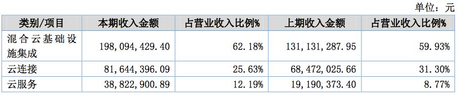 同时值得注意的是随着整体业务规模的扩大,其核心业务混合云2018年营收1.98亿元,占比62.18%;云连接营收8164万元,占比25.63%;云服务营收3822万元,占比12.19%。