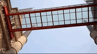 这座桥除了连接文峰塔和灰姑娘城堡之外,桥身处就是学校的行政办公室,两座桥塔中间有悬空玻璃栈道连接。