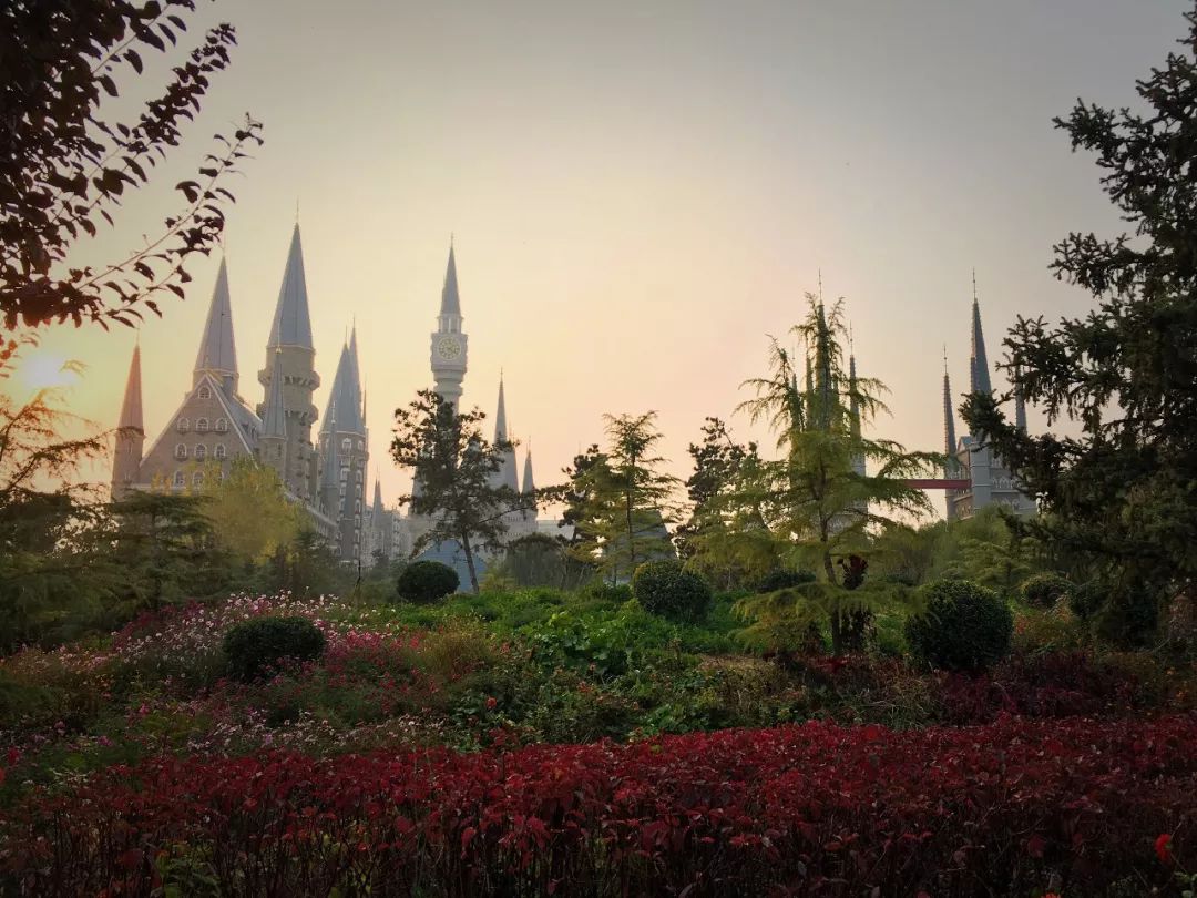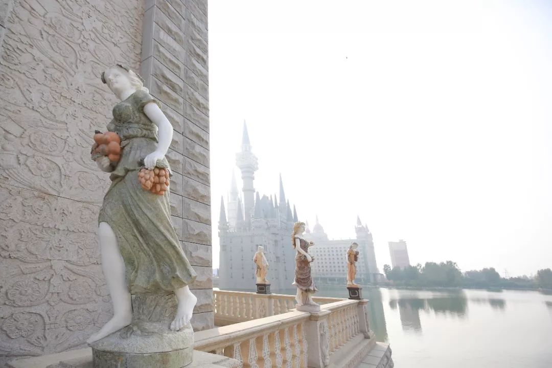 帝国广场上的城堡群名叫“灰姑娘城堡”,从左至右分别是城堡酒店、河北美院的行政办公楼和学生宿舍。学校并不对外开放,如果你愿意花不到300元入住城堡酒店,就可以凭房卡进校园去参观。