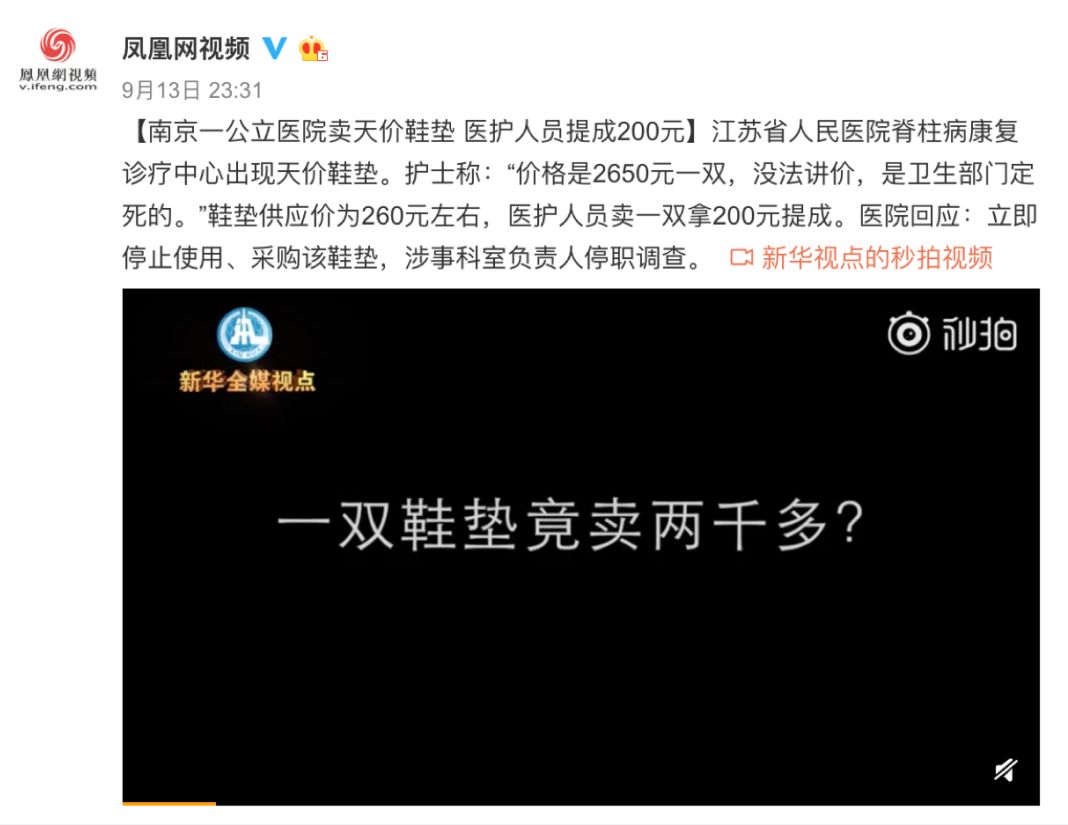 最近,多家媒体报道了江苏一家医院的“天价鞋垫”新闻。新闻中提到,这家医院的脊柱病康复诊疗中心将进价260元的鞋垫“稍做加工之后”以2650元的高价卖给患者,毛利2000多元。很多人因此惊呼:这简直是暴利。