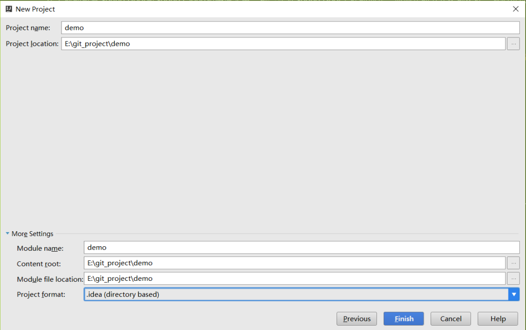 点击Next,进入最后关于工程物理存储的一些细节。最后,点击Finish就能完成工程的构建了。