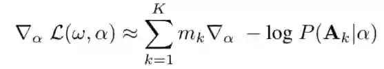 式中, 为模型权重。数据似然的连续积分是通过抽样架构和平均来逼近的。在抽样架构中可以通过估计梯度联合优化架构参数 和模型权值 。