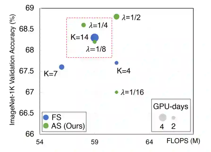 在本文中提出基于架构分布熵自适应地减少架构样本,大幅减少搜索时间,使搜索规模更大的架构成为可能。为了搜索轻量化模型,可区分的NAS方法被调整为对硬件敏感。