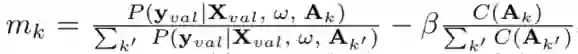 表示成本感知架构的重要权重。直观地说,架构参数的更新偏向于那些既能在验证数据上实现高数据似然性又能使用低延迟的架构。在搜索的最后,选择学习分布中最可能的一个作为最终的架构。