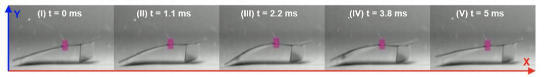 为了进一步研究小机器人的运动机制,研究人员利用高速摄像机记录了其在 60V、200Hz 正弦交流电下的运动过程。