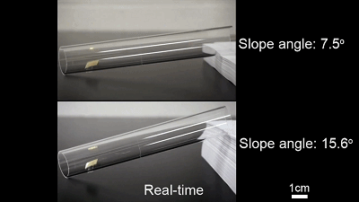 走一个 15.6 度的斜坡(此处用到的机器人尺寸为 1x1.5cm^2,24mg):