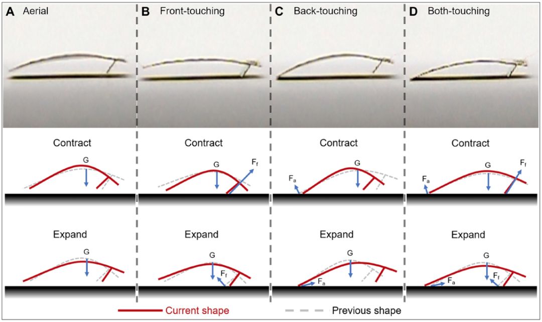 这种形状变化使得机器人的脚可以撞击地面,产生前进所需的反作用力。