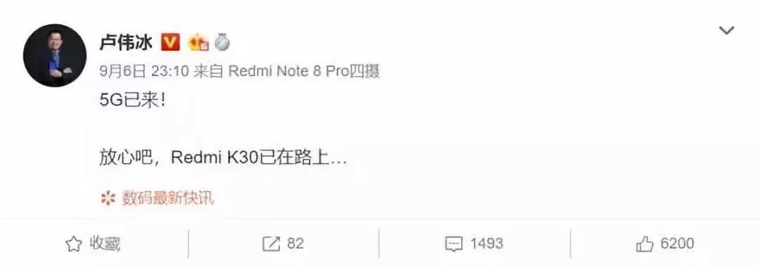 看完小米我们再来看看红米,小米集团副总裁、Redmi品牌总经理卢伟冰近日微博透露,RedmiK30已在路上。