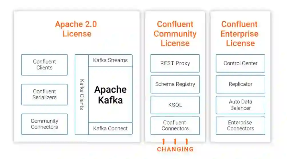 15 日,Confluent 宣布修改其平台部分组件的开源许可,从 Apache 2.0 切换到 Confluent Community License。