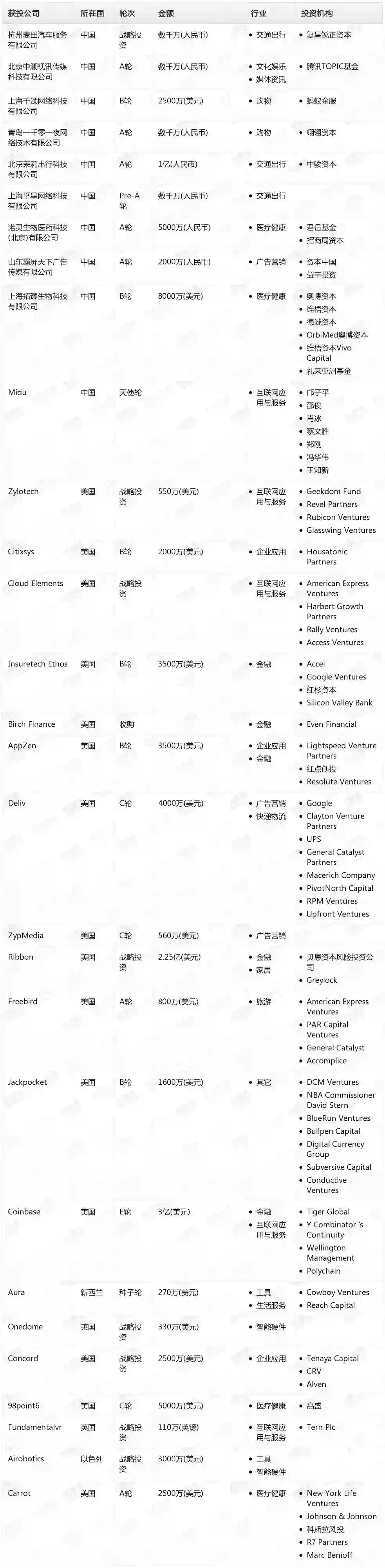 海外科技行业的投融资总额约8.28亿美元,单笔最大交易事件发生在金融行业,获得融资的企业为Coinbase,交易金额高达3亿美元。