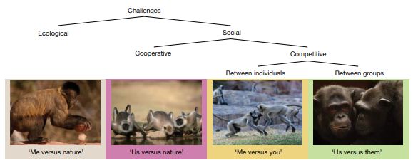 根据英国圣安德鲁斯大学的Mauricio González-Forero和Andy Gardner开发的一个新的预测模型,人脑大小的演化响应了大量不同因素,其中60%是生态的,30%是合作相关的,10%是群体竞争相关的。个体之间的竞争相对不那么重要。以上发现值得深思,因为它意味着社会复杂性更有可能是人类形成较大脑袋的结果而非原因,而且人类本性更有可能源自生态上的问题求解和累积文化演变,而非社会操纵。