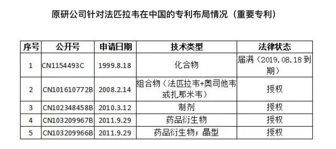 值得强调的是,由于 20 年专利保护期已经过去,法匹拉韦在中国的化合物专利已经在 2019 年 8 月 18 日到期。