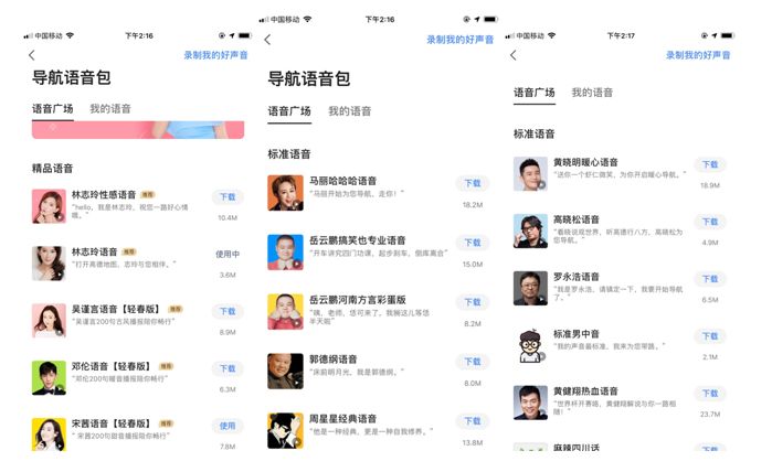 85、90后用户是真正的互联网原住民,他们喜欢追星、崇拜偶像,也渴望个性化的产品和服务。我并不否认字正腔圆的主播们会受到很多人的欢迎,但如果让知性女神陪伴一路,应该是很多宅男用户梦寐以求的事儿。高德地图率先采用的明星语音导航,在地图圈儿里,把个性化做到了极致。
