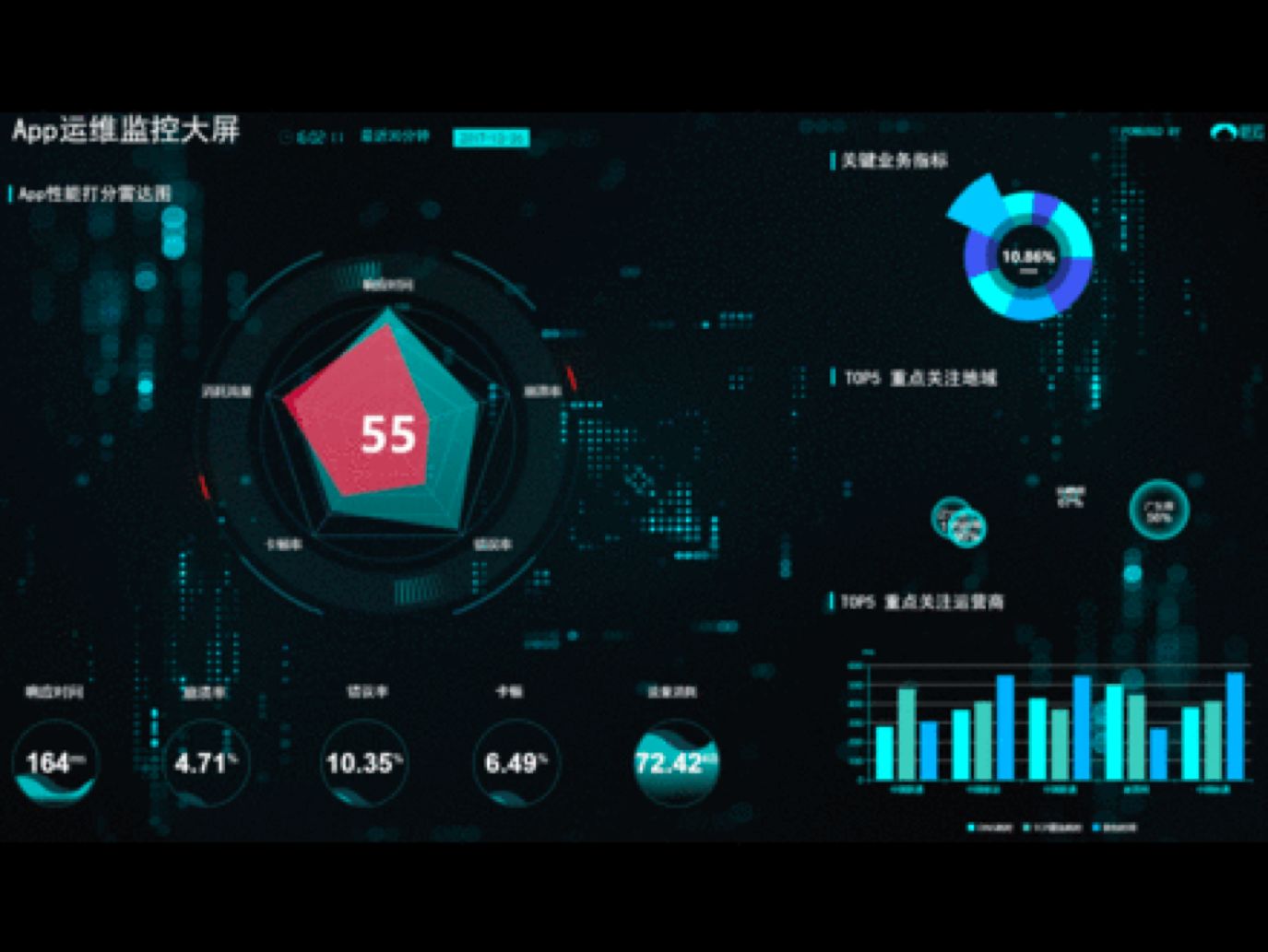 听云IT智慧运维大屏支持听云App、听云Server、听云Browser以及第三方API的数据监测。
