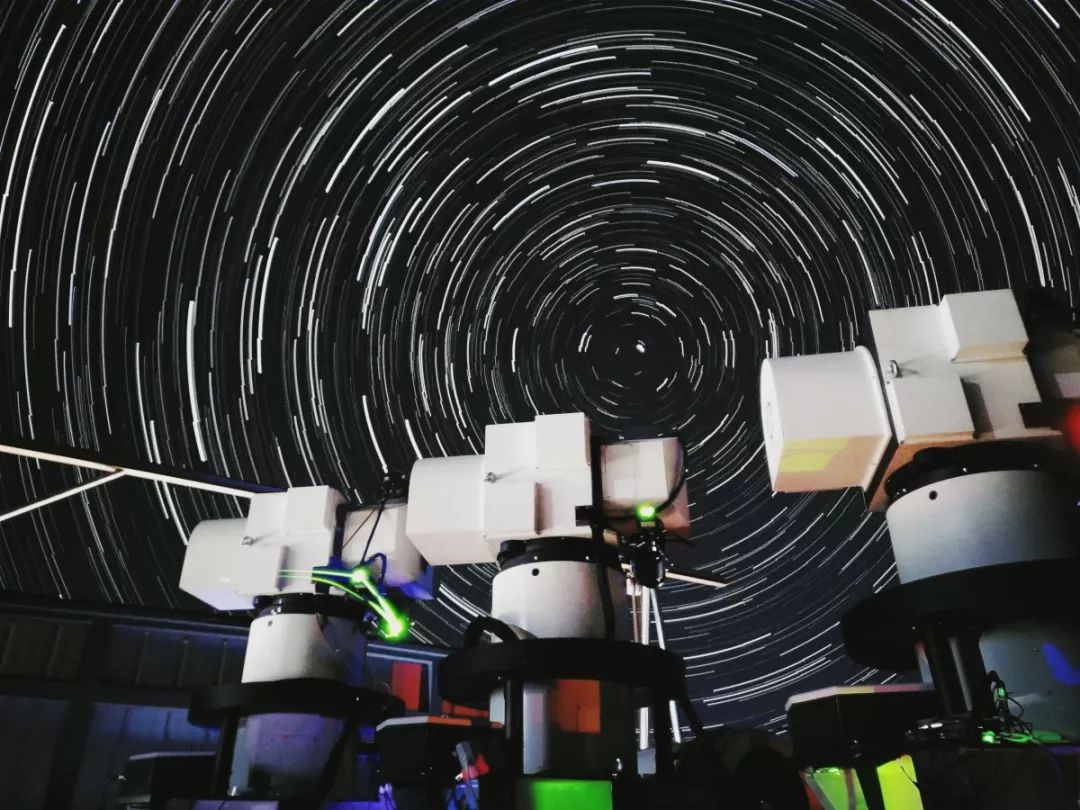延时摄影下的阿里地面站望远镜,用于与墨子号进行量子通信