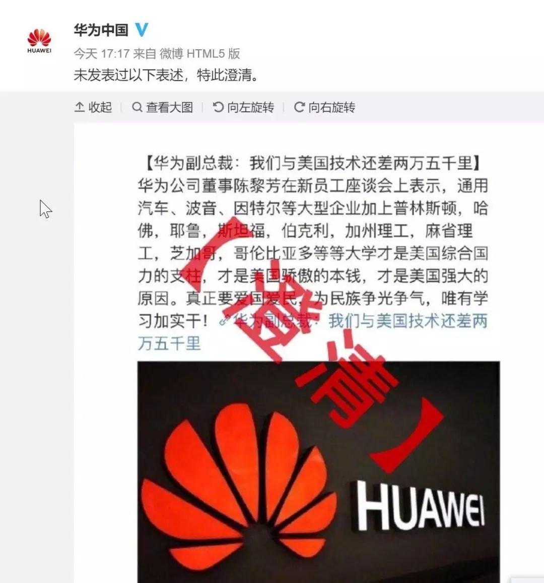 针对连日来网络上广泛传播的《华为副总裁:我们与美国技术还差两万五千里》一文,华为中国昨日晚间在官微回应称,未发表过以上表述,特此澄清。