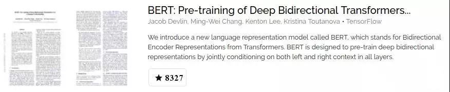 Google AI随后开源了这篇论文的代码,一个月的时间,BERT在GitHub上已经获得8000多次的标星,而且还在快速增加。