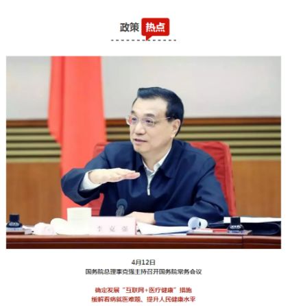 4月13日,国务院常务会议确定发展互联网+医疗健康战略,运用人工智能技术改革医疗服务,提高医疗效率。