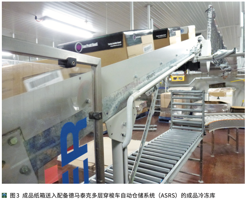 德马泰克为NCMC提供的输送线网络,连接各种生产流程(包括纸箱封盖、贴标签和整托冷冻)自动传输纸箱,然后将成品纸箱送入配备德马泰克多层穿梭车自动仓储系统(ASRS)的成品冷冻库。