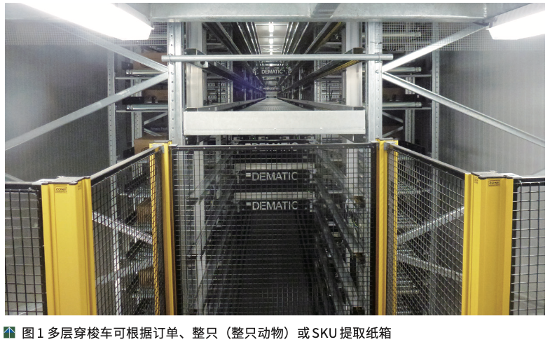 多层穿梭车ASRS系统可容纳多达4300件纸箱,可以自动创建、缓存和预分拣配送订单。该系统可以将纸箱放入多层穿梭车ASRS中的存储区域,并尽量节省存取纸箱的时间。多层穿梭车无需履行订单的时候,就会进行库内管理,重新排列纸箱在系统内的位置,以尽量缩短取货时间。