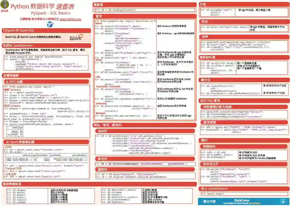大数据系列推出的内容包括:PySpark基础与进阶:
