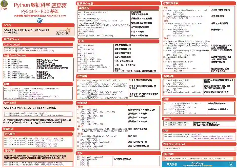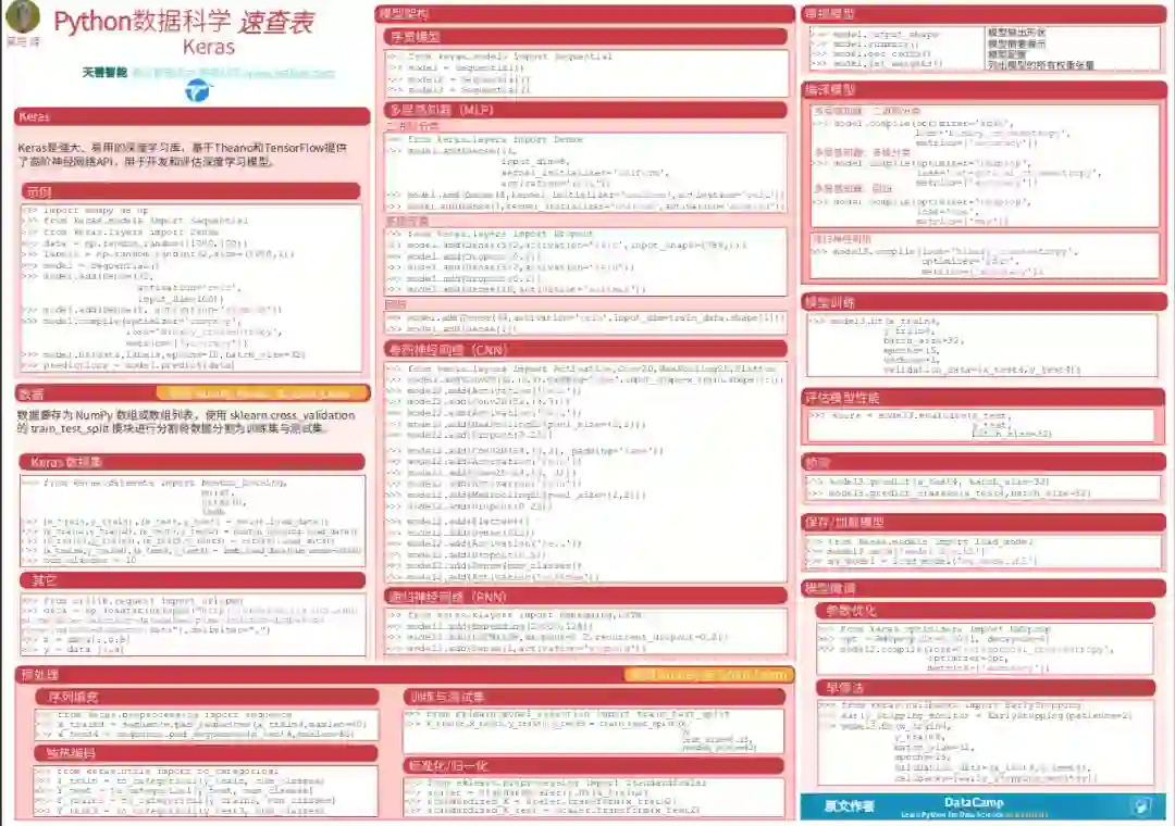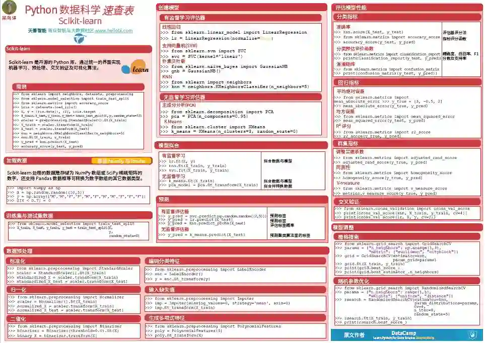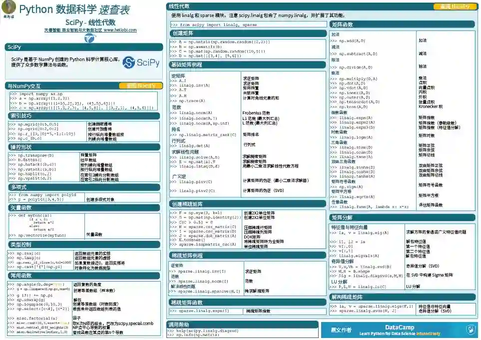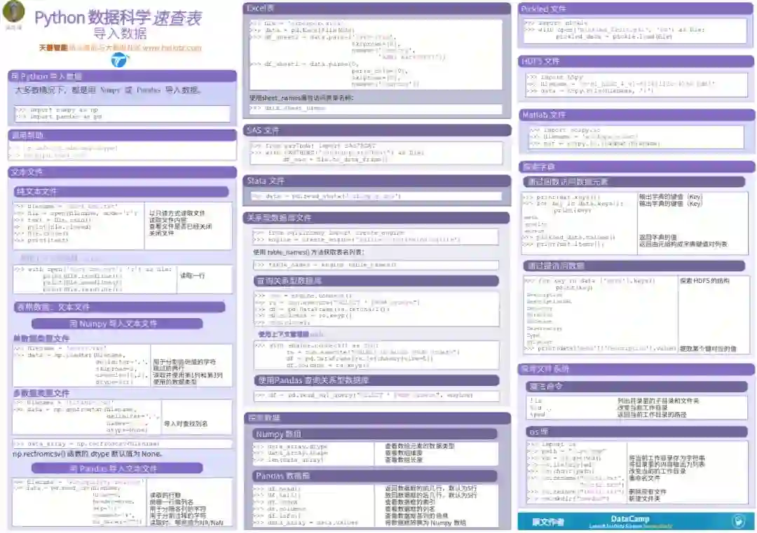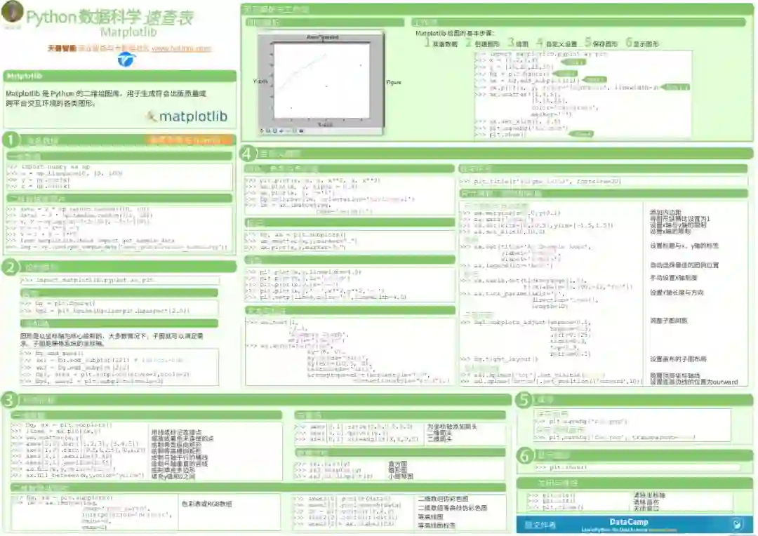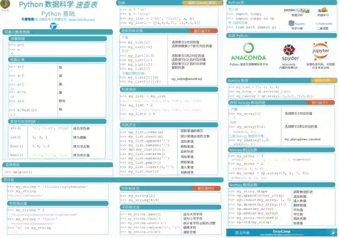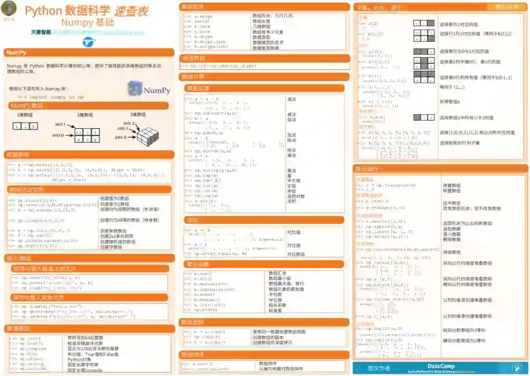 DataCamp 推出的 Python 数据科学速查表,已经翻译成中文啦!