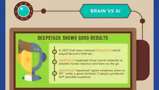 2017年,UoA发布了DeepStack,专攻无限下注的德州扑克。DeepStack采用了深度神经网络,来模仿人类在围棋游戏中的“直觉”和学习能力。DeepStack将游戏的场景“压缩”到10的14次方,由此一来,两个玩家的对抗产生的可能的游戏场景就是10的160次方。