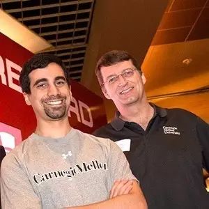 卡耐基梅隆大学的 AI 程序 Libratus 的开发者Tuomas Sandholm 教授(右)与 Noam Brown 博士