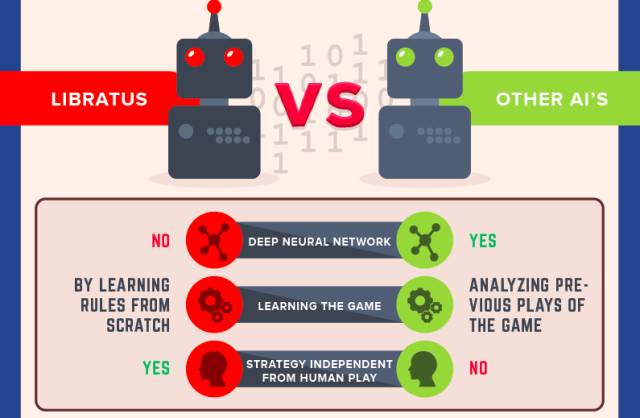 Libratus依赖于一个算法来计算策略,而非修正已经被写入程序的策略。