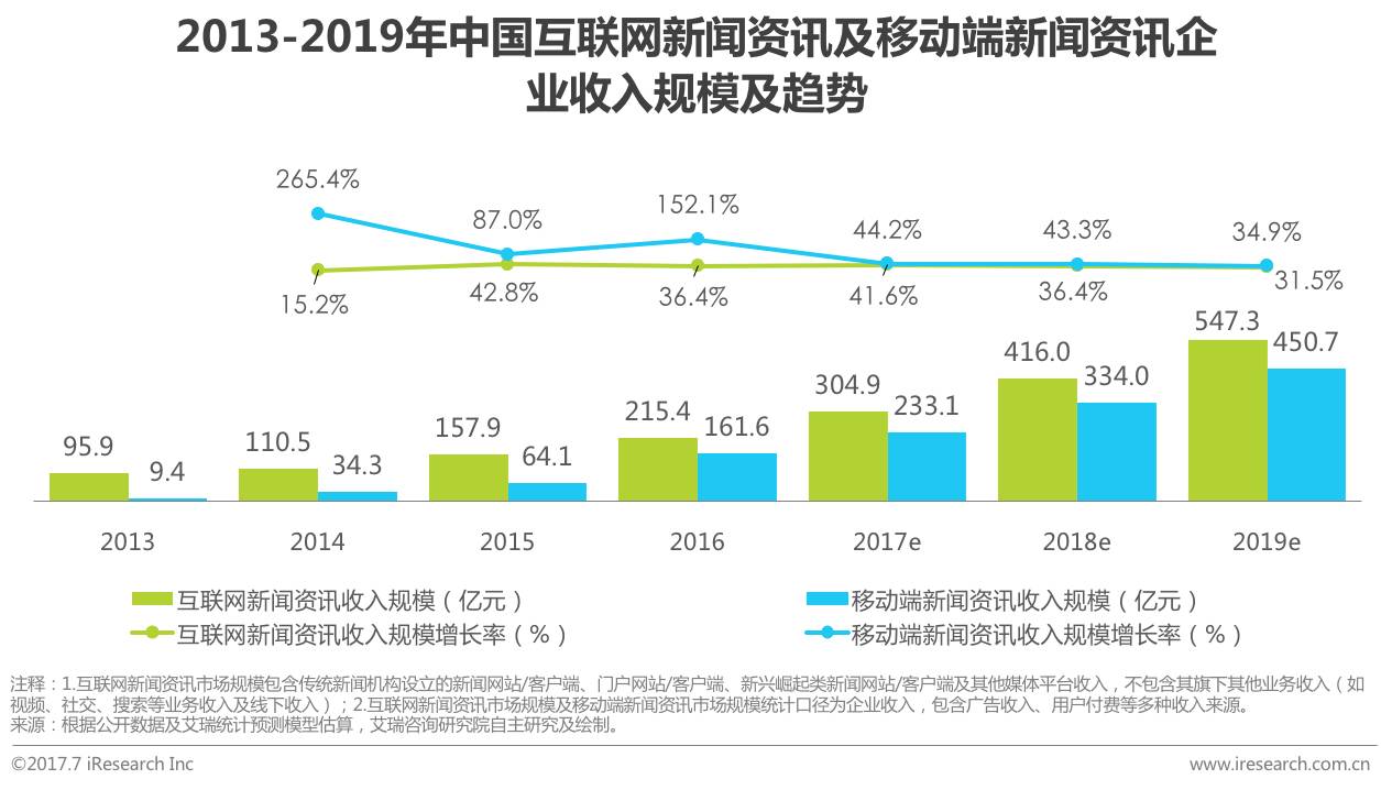 2016年移动新闻资讯市场规模达到161.6亿元,增速超150%