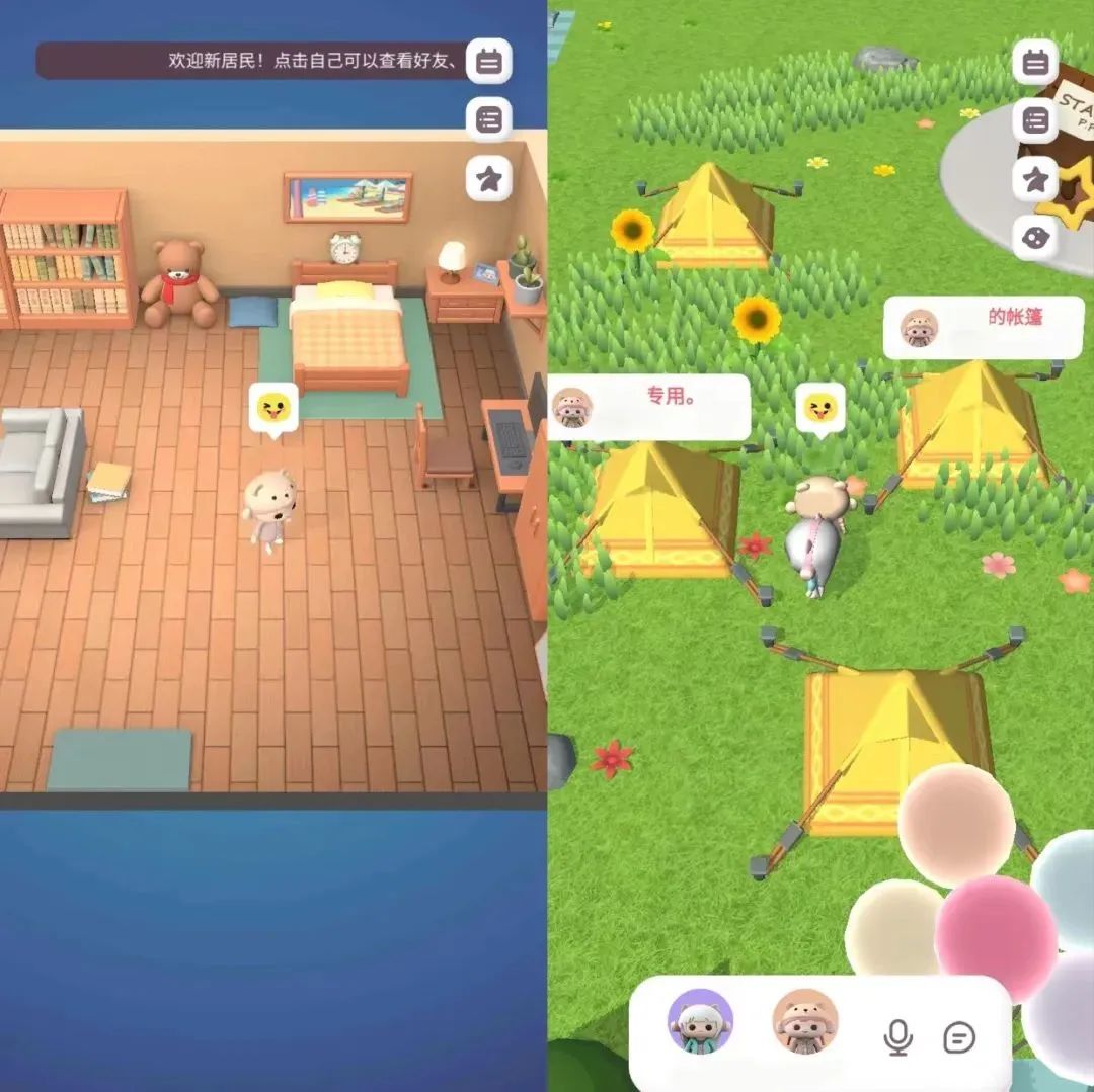 除了能够进入帐篷、咖啡厅等空间聊天外,缓缓星球独特的玩法是能够进行3V3的足球比赛。