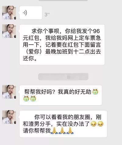并且他还想了众多的剧情剧本,有的则是网上帮母亲订车票,没钱了,然后借点钱订车票,明天还你。有的则是说自己跟男朋友分手了,失恋之后求安慰等等一系列剧情。