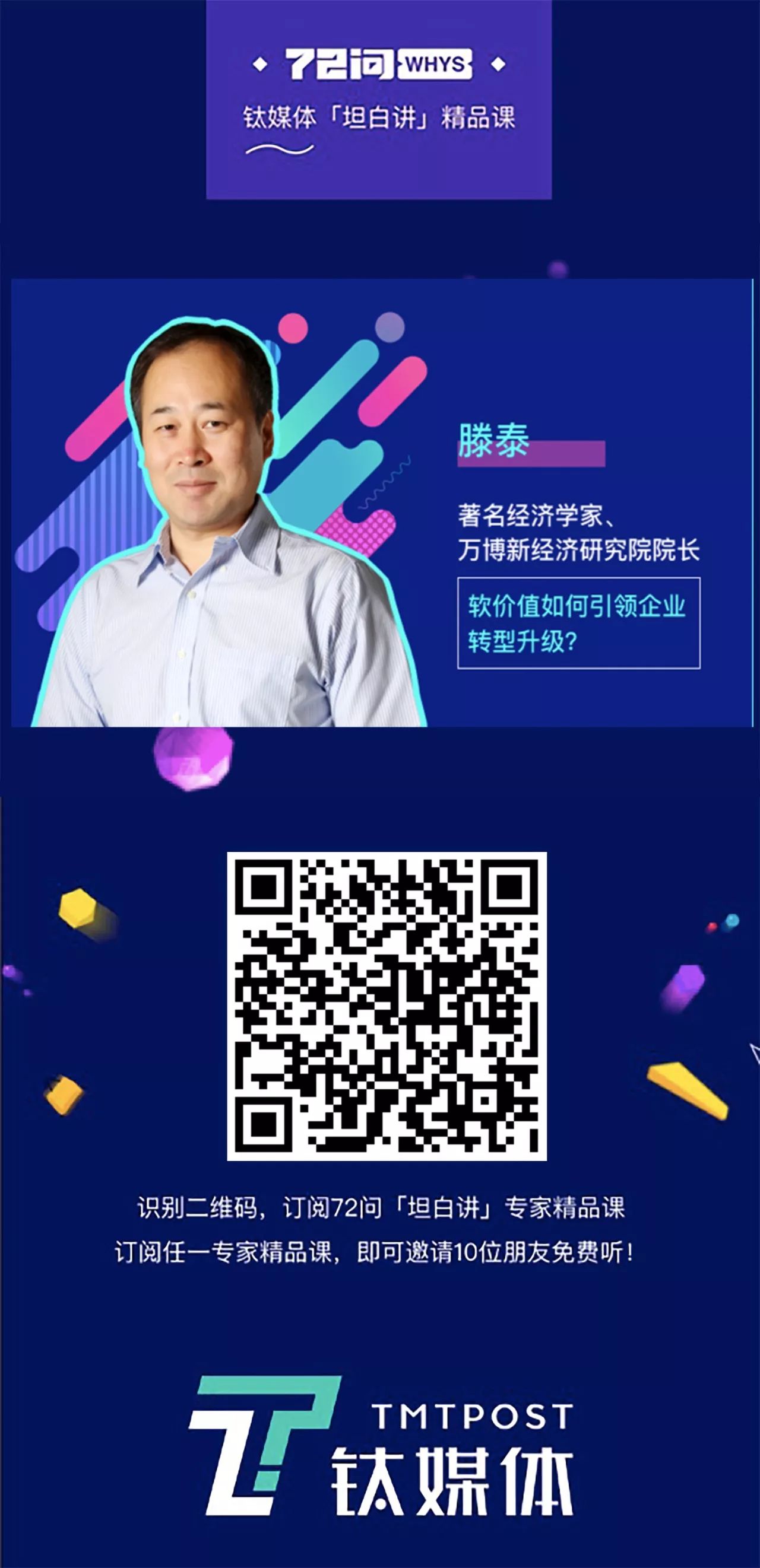 如果你是对快速变革的社会组织方式和经济形态感到迷茫的人;如果你是渴望把握住新时代变化趋势的人;如果你是困惑于企业如何转型才能跟上新时代财富创作规律的人。那就不要错过滕泰的音频分享课【软价值如何引领企业转型升级】(可点击阅读原文直接订阅,或者下载最新版钛媒体APP体验更好哦)。